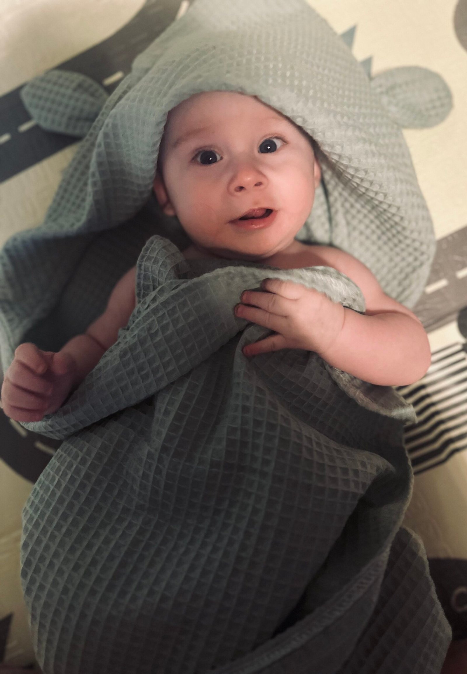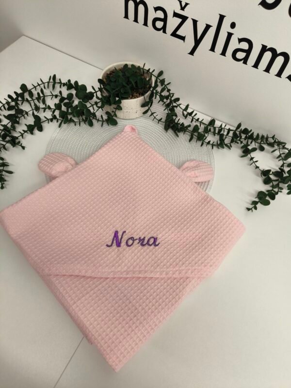 Medvilnės vafliuko rankšluostis gaubtuvu ir ausytėmis