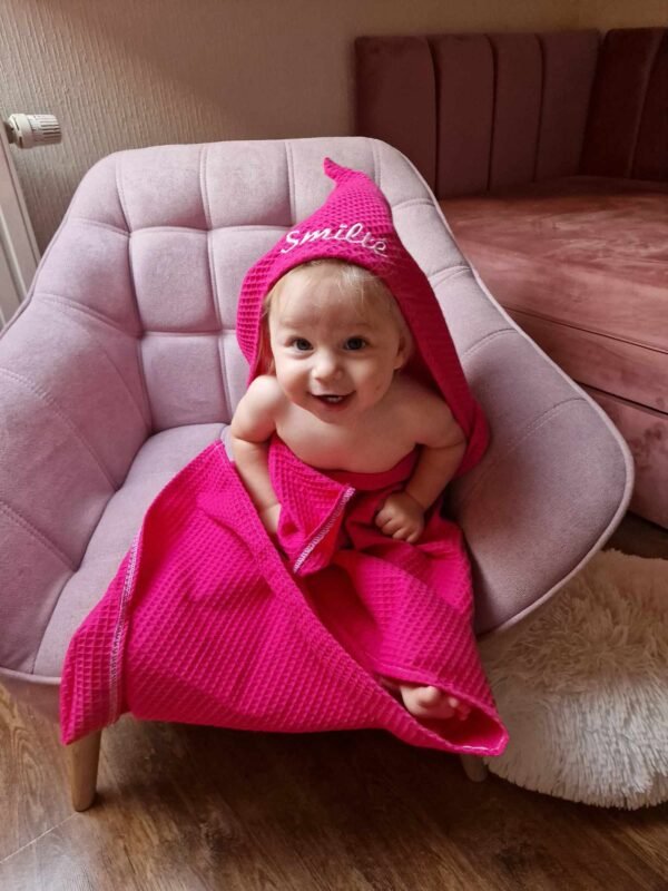 Medvilnės vafliuko rankšluostis gaubtuvu ir ausytėmis rožinis
