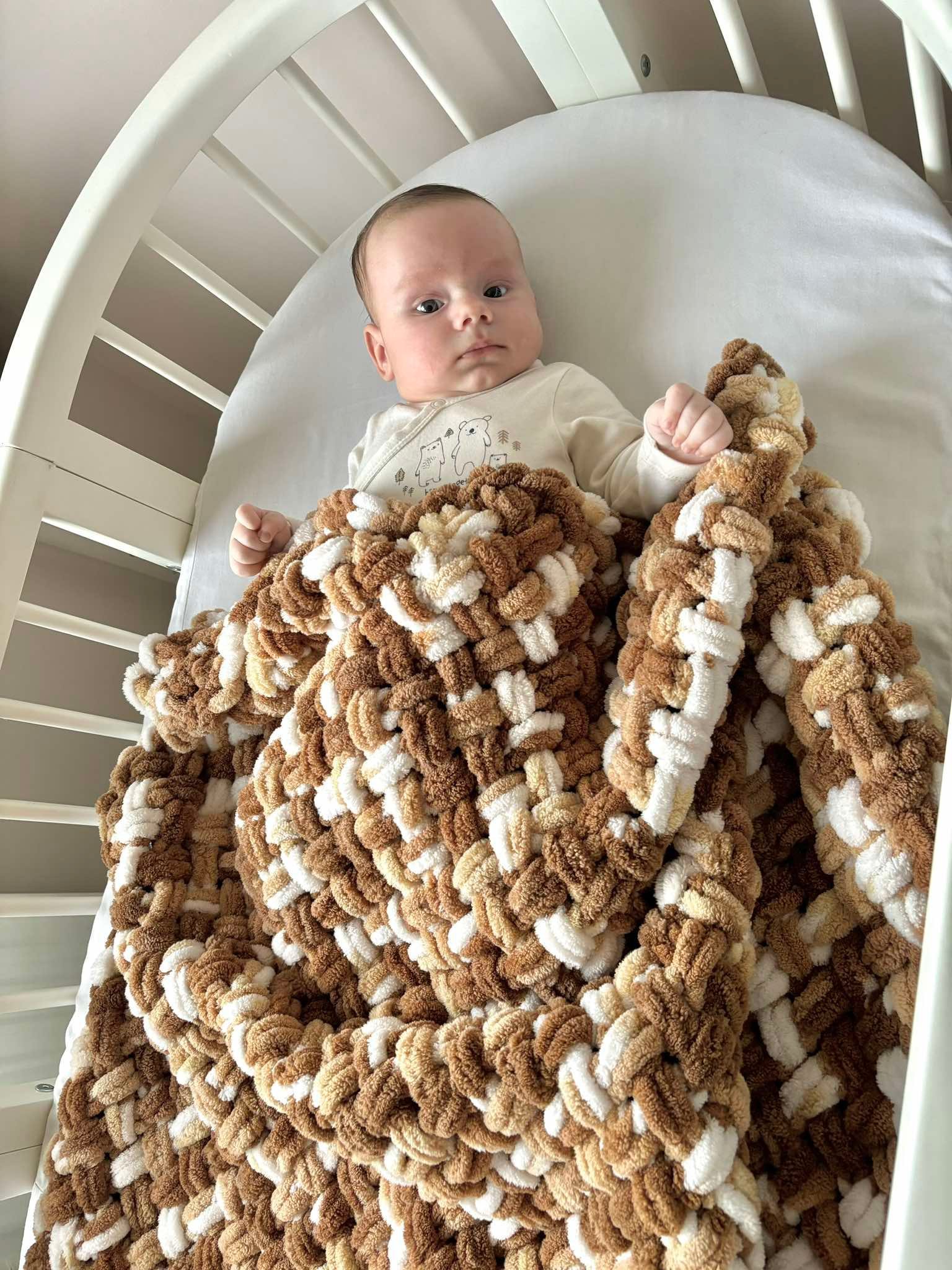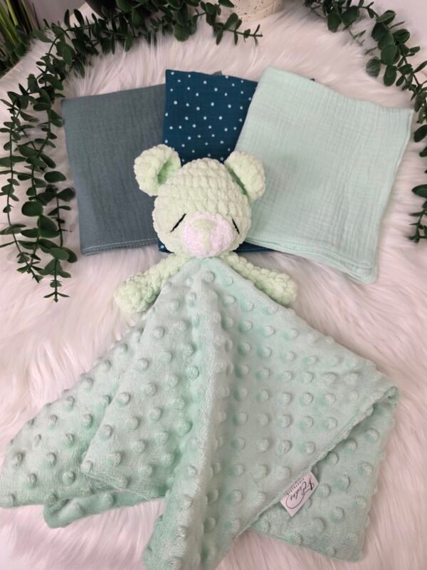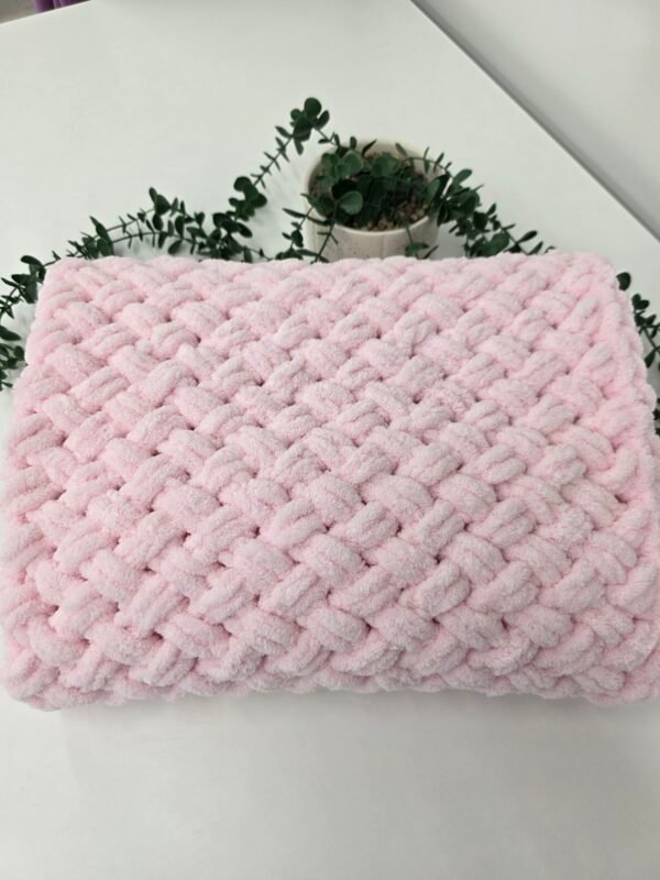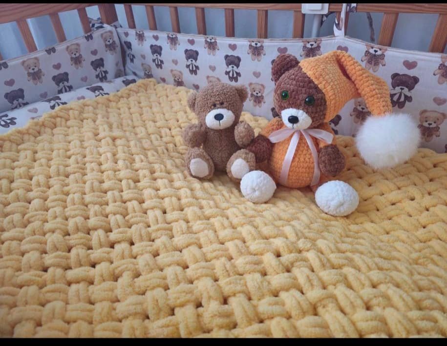 Pledukas megztas rankomis iš itin minkštų ir švelnių Alize Puffy siūlų kurie lengvai prižiūrimi ir tinkami mažyliams nuo pat gimimo. Dėl savo hipoalerginės sudėties nedirgins mažylio odelės. Pledas yra švelnus, minkštas ir šiltas.