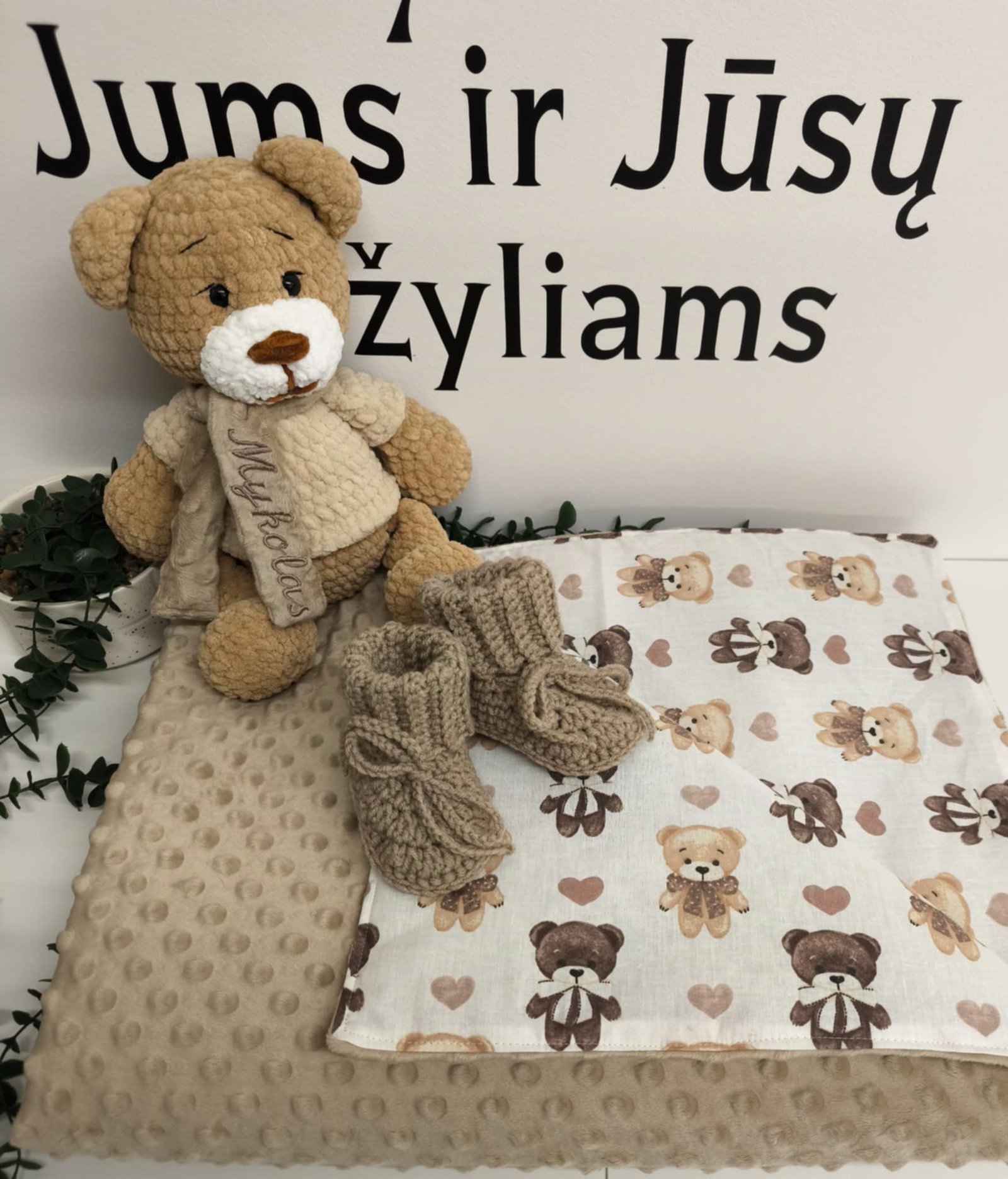 Rankų darbo pliušinis meškiukas