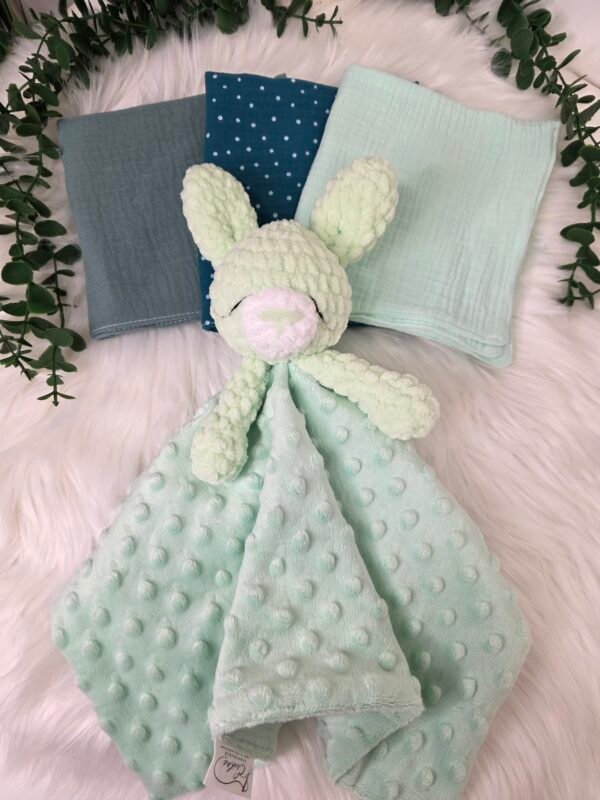 Medvilnės vafliuko rankšluostis gaubtuvu ir ausytėmis – mėta