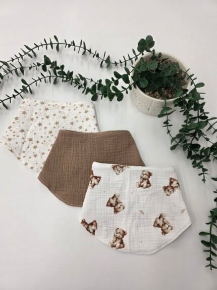 Kaklaskarės kūdikiams – praktiškos ir stilingos apsaugos nuo seilių bei maisto dėmių. Švelni ir orui pralaidi medvilnė užtikrina komfortą kiekvieną dieną.